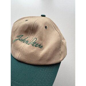 K-Products JOHN DEERE Made in USA Beige Green Canvas Logo Script Baseball Hat
