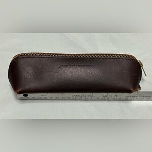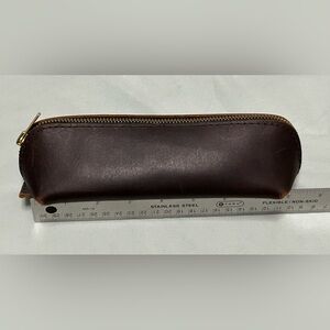 This elegant brown, zippered, leather case is perfect for organizing your pens or make-up brushes or whatever! Its timeless design and quality craftsmanship make it a must-have accessory.