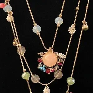 Enhance your style with this chic gold necklace featuring a vibrant array of beads. Perfect for any occasion, this accessory adds a splash of color to your ensemble.