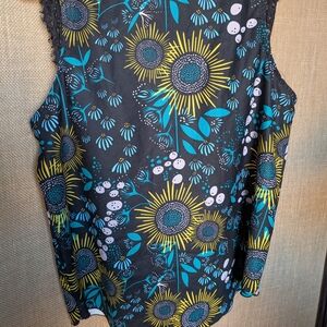 Elegant sleepwear featuring a vibrant floral design with lace trim. Size medium