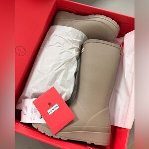 Elegant tan boots by Hunter. Ideal for wet weather. FIRM ON PRICE.