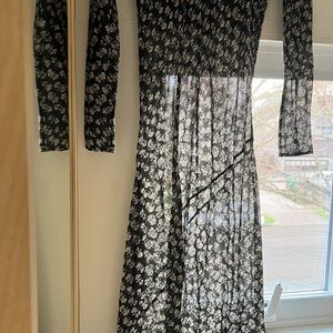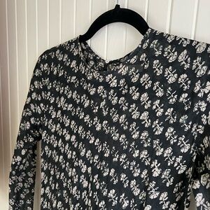 From the 2016 (and I think first!) season of Dôen. Beautiful black block printed dress. It’s sheer! (See photo near window). Worn only once or maybe twice. It’s been protected in my closet and is in excellent condition.