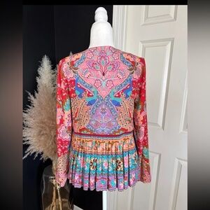 The statement jacket you need in your life, one of those pieces you will want to hand down! A flattering cut that suits all shapes, the jacket features two tie fastenings with tassels at the chest and under bust (so can be worn as a top if you dare!), a frill from the waist down, and long sleeves