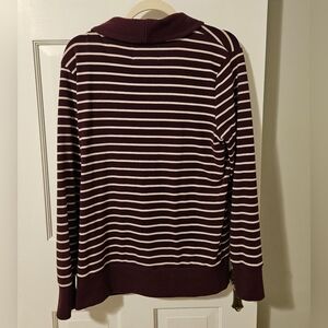 Banana Republic Cowl Neck Knit Sweater with button detail & front pockets. Color: Maroon w/ white stripes. Size: L.