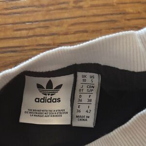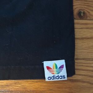 Black Adidas tee with vibrant rainbow logo trim on sleeves. Ideal for everyday style. Size Small, UK10, US6