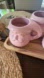 Charming pink Santa Claus mug. Perfect for festive drinks.