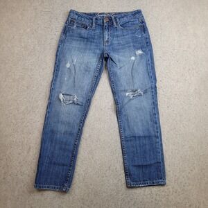 American Eagle Wide Leg Crop Jeans Womens 0 Blue Light Wash Distressed Vintage