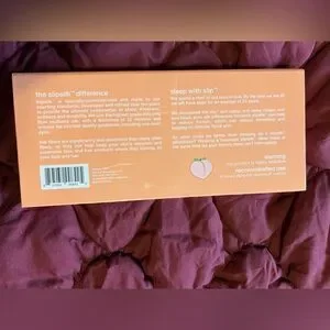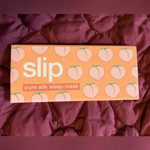 Silk sleep mask by Slip. Features peach pattern on orange background.