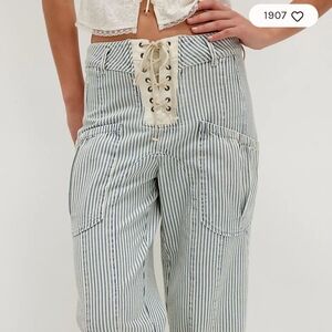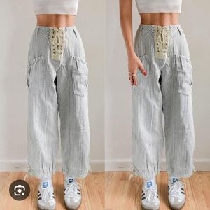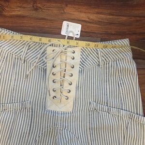 Smooth Sailing Cropped Jeans Striped Lace-Up High-Waisted Pants Size 26 Stylish high-waisted pants with a lace-up front. Features a blue and white striped pattern. So adorable! I love them but they're not my size. I have hundreds of other items to choose from- bundle with another item to ship in the same box! Bundles automatically get 20% off! New to Poshmark? Get $10 free for your first purchase by using code “kurtjohnson316” when singing up!