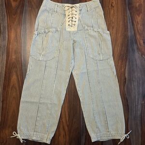 Smooth Sailing Cropped Jeans Striped Lace-Up High-Waisted Pants Size 26