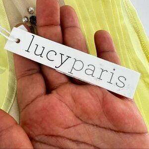 Lucy Paris yellow bejeweled blouse top size M