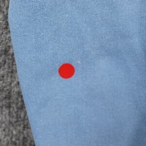 Previously worn pullover with light overall wash wear. Small faint spot on one sleeve near the cuff as shown. Fabric and seams are intact with no holes or fraying, interior fleece remains soft.