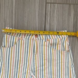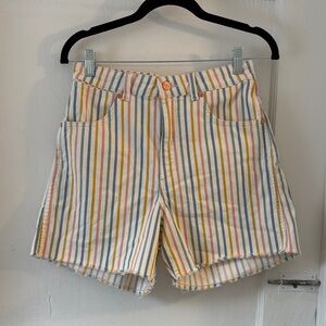 Vibrant striped jean shorts. Features multicolor design. Perfect for casual wear. Adorable! Barely worn!