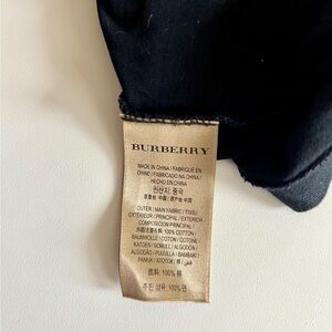 Sleek black Burberry tee with plaid at the collar. Short sleeves. Timeless style. Excellent condition from the closet of a former employee.