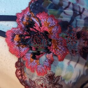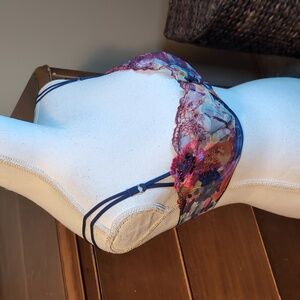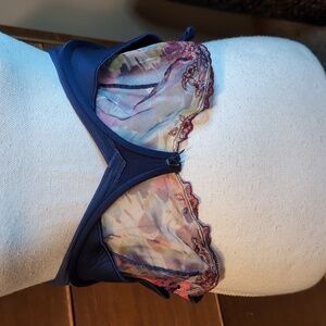 Sheer lace with sexy embroidered cups, push up lining with no extra padding, underwire.