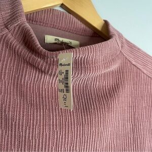 Madewell Striped Jacquard Funnelneck Rosewood Pink Long Sleeve Top Size M NWT