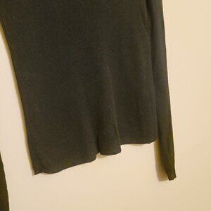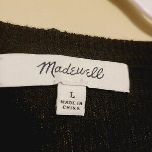 A slim ribbed lightweight sweater with fluttery ruffles at the shoulders. Supersoft against the skin, this size large black pullover by Madewell is lightweight enough to tuck into your high-risers.
