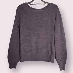 Made With Love Purple Fuzzy Scoop Neck Sweater. Dusty lavender purple color. Super soft and fuzzy fabric. Slight balloon sleeves. Only worn once. Size Large.