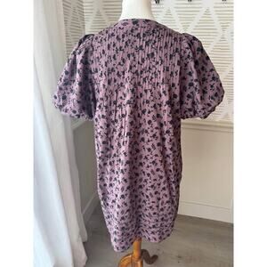 Crafted from a floral-print cotton blend, this easy babydoll dress has a split neck and elbow-length puff sleeves. Pleats and pintucks around the hem make it that much more special.