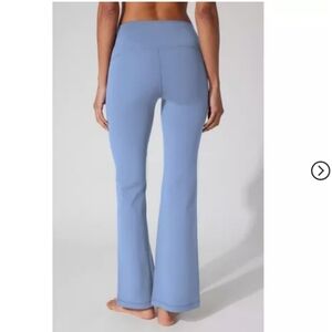 Experience comfort and style with these blue flared leggings. Perfect for yoga or casual wear.