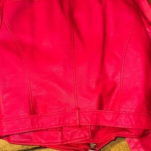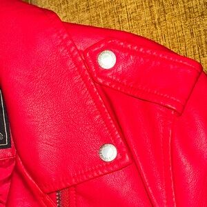Stand out with this striking red leather jacket from Levi's. Features a classic biker style with zippered pockets and a sleek belt detail.