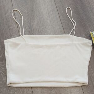Chic white camisole with spaghetti straps. Ideal for layering or wearing alone. Soft and comfortable fabric. Straps have a slight grey stain of sort. Barely noticed but wanted buyer to be aware. Medium or US size 6