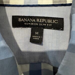 Banana Republic Men's Non-Iron Blue and Black Checkered Shirt