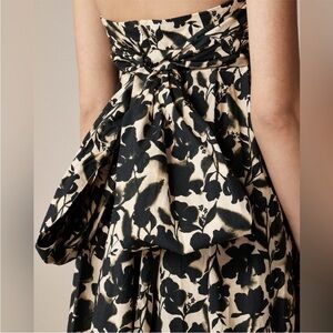 NWT Chic strapless J. Crew dress with a black and cream floral design. Dramatic bow and full skirt make it perfect for elegant occasions. Size 18–purchased for my wedding but never worn.