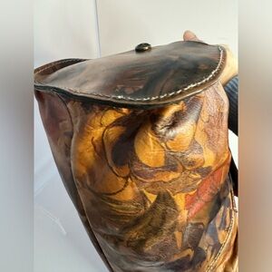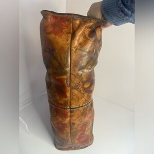 Patricia Nash Lione Heritage Multi Color Floral Print Large Leather Shoulder Bag