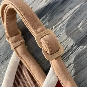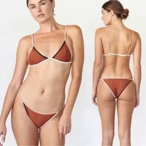 A minimal coverage bottom with adjustable hardware on side straps and piping detail. Matte finish custom logo hardware.