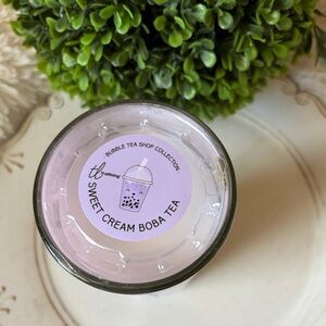 Enjoy the soothing aroma of cream boba tea with this lavender-scented candle. Perfect for creating a relaxing atmosphere.