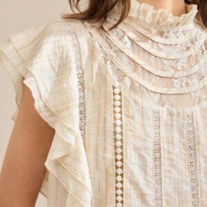 New 2026 Beige White Ruffle Lace Blouse