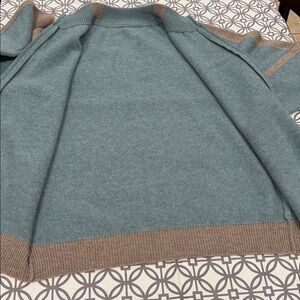 NEW.. Two Tone Zip Front Mens Sweater…. no size tag.... I believe it to be a medium.. pit to pit 21”.5. Shoulder to hem 27” please see all pictures…(16)
