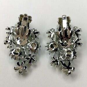 1960s Vtg Silver Tone Statement Clip On Earrings Enamel Flowers & AB Rhinestones