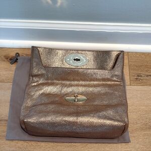 Mulberry Clemmie Postman Twist Lock Clutch Bag Gold Metallic Leather Fold Over & Dustbag