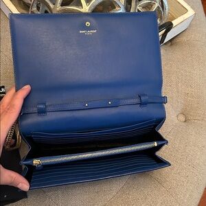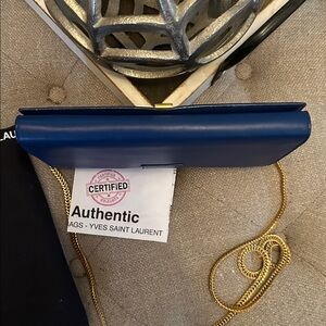 Authentic YSL Y-Ligne Royal Blue Clutch/ Crossbody gold chain strap