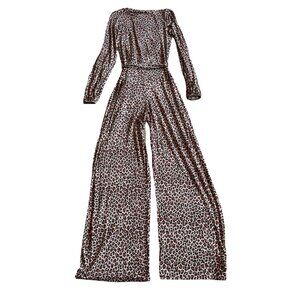 LTS Long Tall Sally Animal Print Long Sleeve Jumpsuit Stretch Comfy Size 6-8
