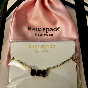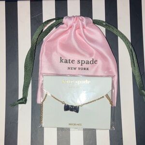 Kate Spade NWT/Dust bag Black Enamel Bow with 16-18in Gold adjustable Necklace