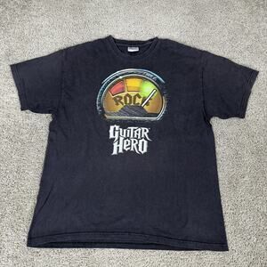 Guitar Hero Shirt Mens Large Black Rock Meter I Rock Graphic Video Game Hanes
