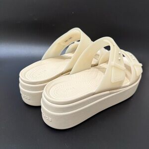 CROCS Beige Sandstone Brooklyn Buckle Frosted Low Wedge Sandals Women’s Size 8
