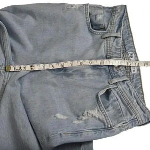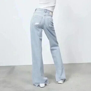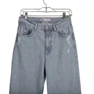Zara Destroyed High Rise Full Length Jeans With Vents Slits Light Wash Raw Hem 6