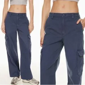 Stylish navy cargo pants. Relaxed fit with side pockets. Perfect for casual wear. Worn once.