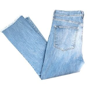 Veronica Beard Carly High Rise Kick Flare Raw Hem Blue Jean in Sunrise Wash. Size 30.