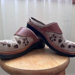 Klogs Brown and Tan Mules with Floral Design