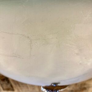 -on interior of bowl, there is a large circular abrasion mark and two areas of missing silver plate (see final photo for closeup)