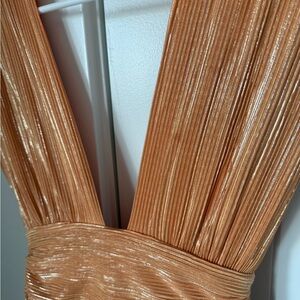 Sabina Musayev Athena pleated maxi dress in a peach/orange metallic finish. Only worn once to an event! It had a tiny little stain showed it the last picture but I had not tried to get it out or take it to the dry cleaners