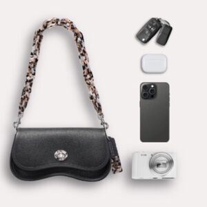 Nothing normal about it: the Coachtopia Wavy Dinky is a shoulder bag with a mission to move us beyond the linear fashion system, putting a new, wavy spin on an archival Coach silhouette from 1973. Wear it as a shoulder bag with one of our detachable, partially recycled acrylic plastic chain straps, or as a crossbody with its longer leather strap. This version