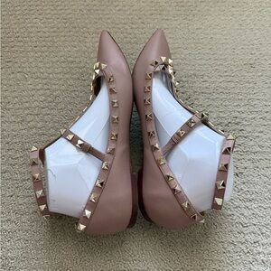 Kaitlyn Pan Women’s Rock Studded Leather Pink Pointed Flat Shoes