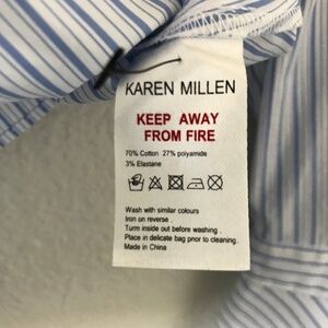 Karen Millen Pleated Striped Ruffle US 6/UK 10 Long Sleeve Button Up Shirt NWOT