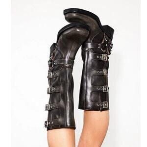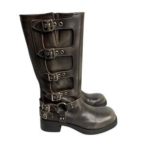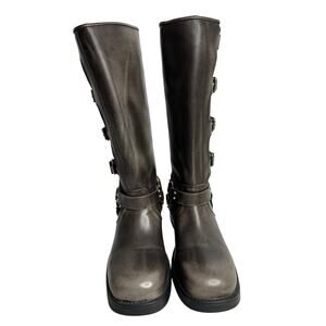 Steve Madden Rocky Distressed Leather Buckle Hardware Tall Moto Engineer Boots